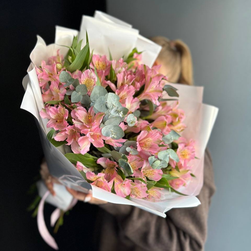 Альстромерия - 15 шт/эвкалипт/упаковка/лента.