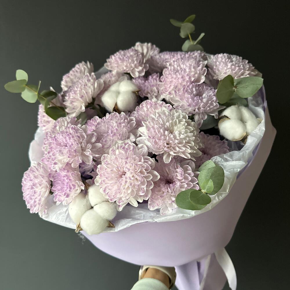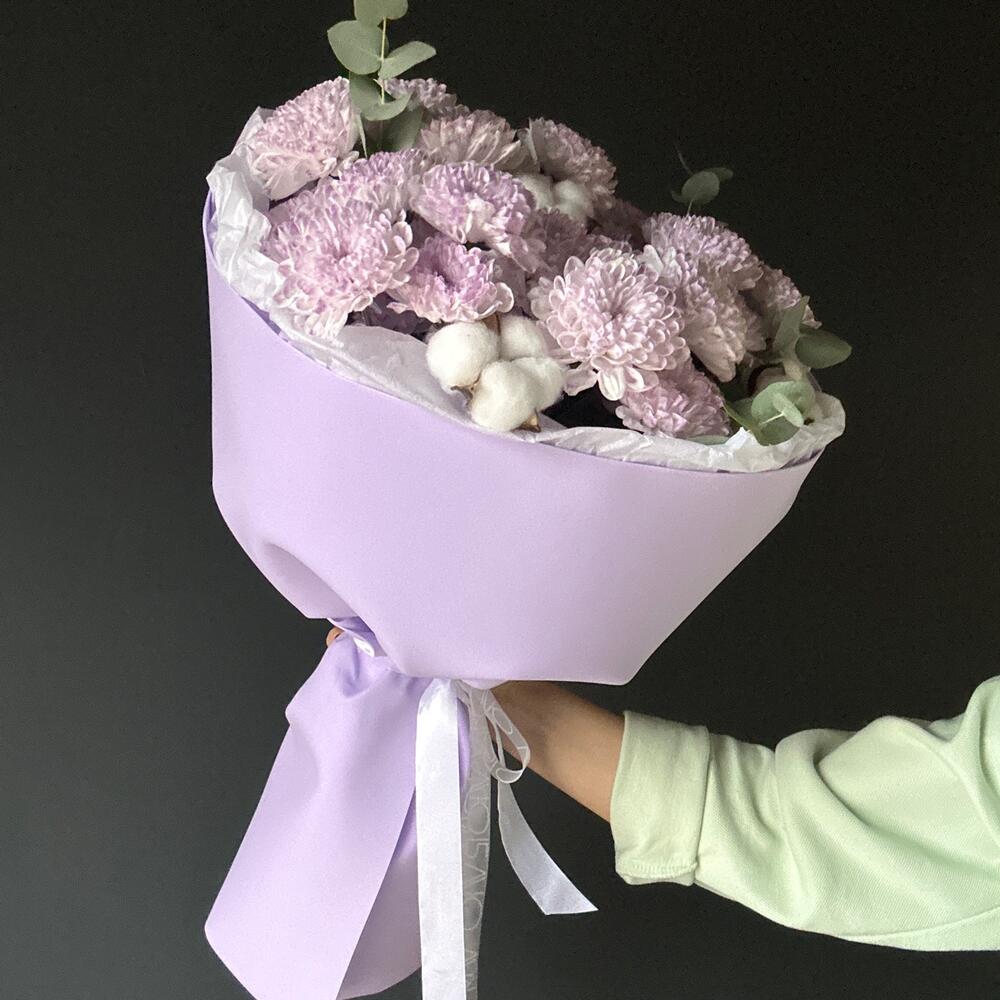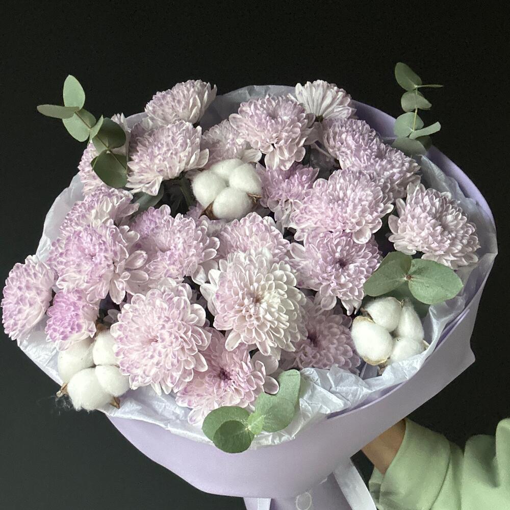 Хризантемы Алтай крашенные/хлопок/эвкалипт/упаковка/лента