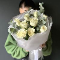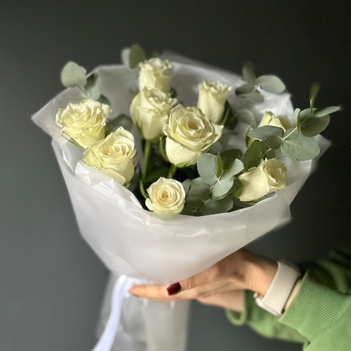 Розы Кения (9 шт.)/эвкалипт/упаковка/лента