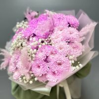 Хризантемы Алтай крашенные-7 шт/гипсофила-2 шт/картодерия/упаковка/лента