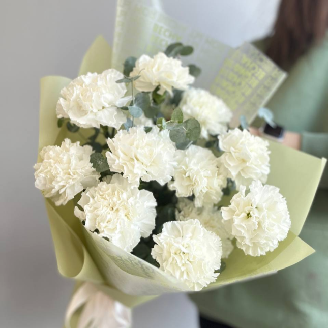 Диантусы-11 шт/эвкалипт/упаковка/лента.