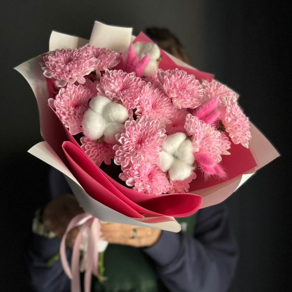 Хризантемы Алтай крашенные/хлопок/лагурус/упаковка/лента